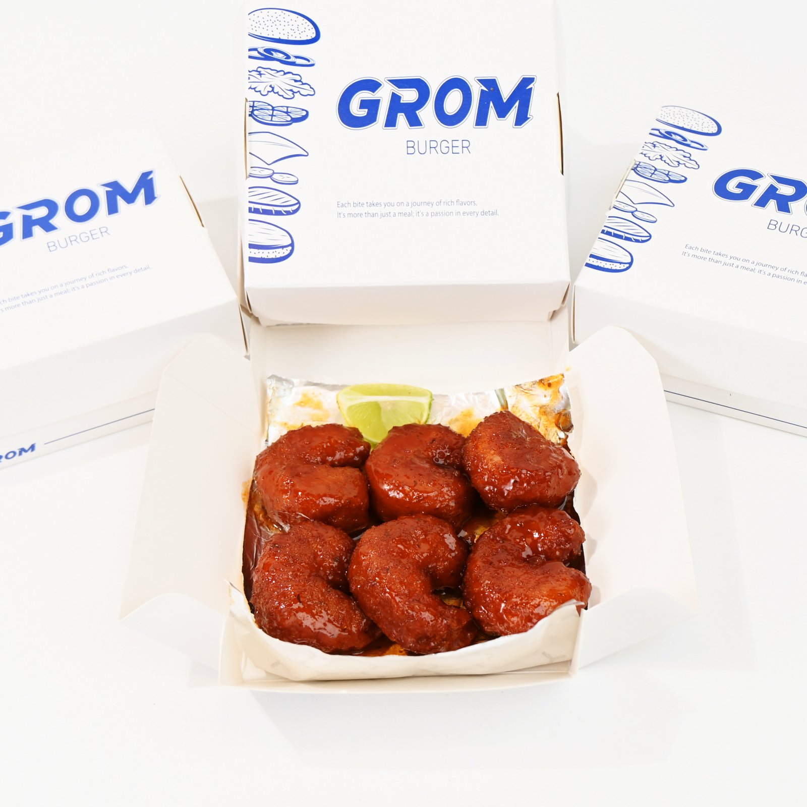 روبيان مقرمش مغطى بصوص البافلو الحار ويُقدَّم مع الليمون وصوص الرانش لتوازن مثالي بين الحموضة والحرارة.
